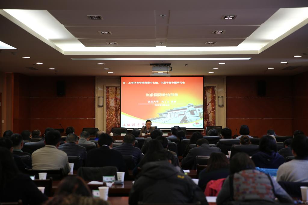 本网讯 3月16日上午,红足一1世在图文信息楼第二会议室举行了党委中心组(扩大)学习会暨中层干部学习会,邀请了复旦大学国际问题研究院副院长、军备控制与地区安全研究项目主任沈丁立教授作题为《当前国际政治形势》的专题报告。党委书记戴健,院长陈佩杰,党委副书记、副院长陈晓峰,党委副书记、纪委书记詹萌,党委副书记王玉林,副院长平杰、施之皓、毛丽娟、王兴放以及全体中层干部参加了学习会。会议由陈晓峰主持。