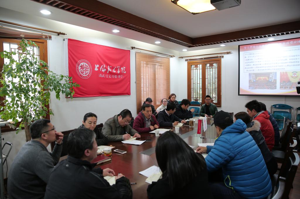 本网讯 3月22日下午,党委书记戴健,院长陈佩杰,党委副书记、副院长陈晓峰,党委副书记、纪委书记詹萌,党委副书记王玉林,副院长平杰、施之皓、毛丽娟、王兴放分赴基层联系点,向全体教职工开展2017年全国“两会”精神宣讲,并与大家一起交流相关工作。