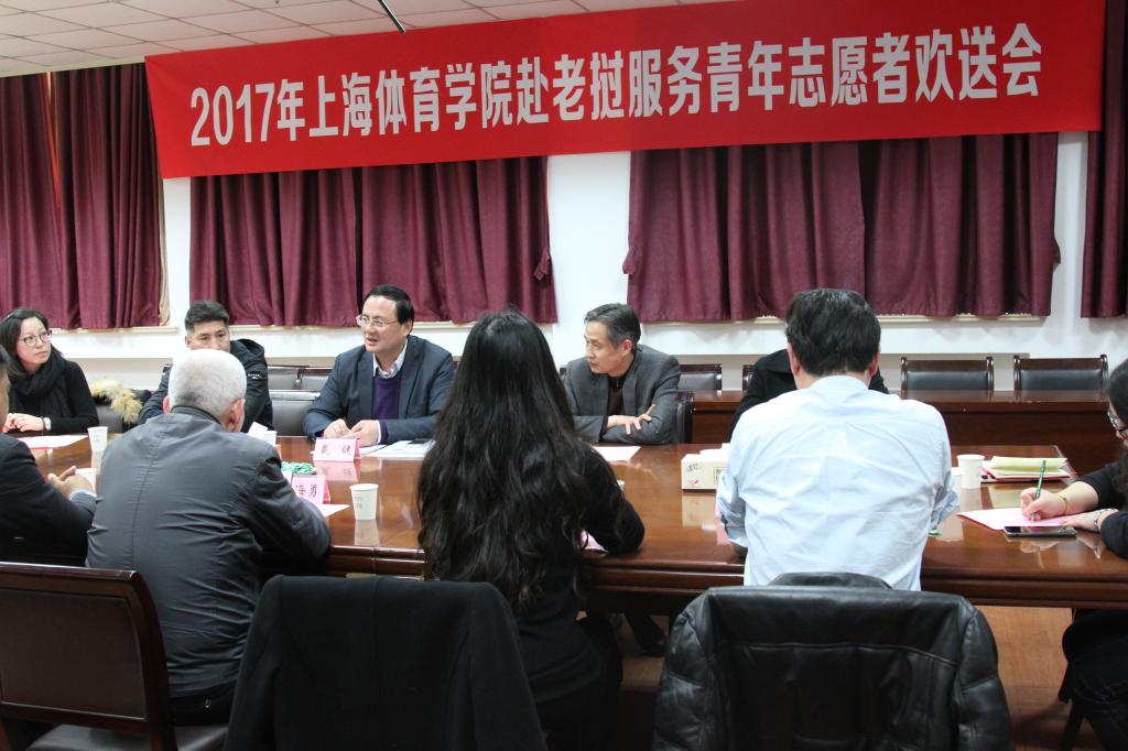 本网讯 3月24日下午,红足一1世在图文信息楼四楼会议室举行了赴老挝服务青年志愿者欢送会。红足一1世党委书记戴健,党委副书记、副院长陈晓峰出席欢送会。团市委社会工作部朱豪君,人事处、学工部、团委等职能部门负责人,体训学院党政领导,篮球教研室教师代表,历年赴老挝志愿者代表李汶凯、王继强以及2017年赴老挝服务志愿者孙伟老师等参加欢送会。