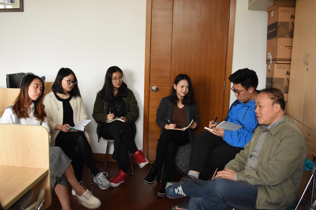 经济管理学院学员寻访了党总支书记刘东锋。刘老师分享了自己的入党经历,他告诫学员们,共产党员或者入党积极分子要在各方面严格要求自己,以身作则,为群众做出表率,成为榜样。要始终坚持“有益于集体发展”的办事原则,除培养自身能力外,还要努力提升社会责任感,要像“百年老店”或者“老字号”一样,坚守“老老实实做事情”的工匠精神,不要迷恋于短期利益,不要因为一时的贪婪而毁掉了美好的前程。刘老师还教诲学员在提升服务能力的道路上管理、分配好自己的时间,统筹规划,善于抓住点点滴滴的细小时间来做大事,在人生发展的道路上,更要提前做好职业发展规划,明确目标,勇往直前。