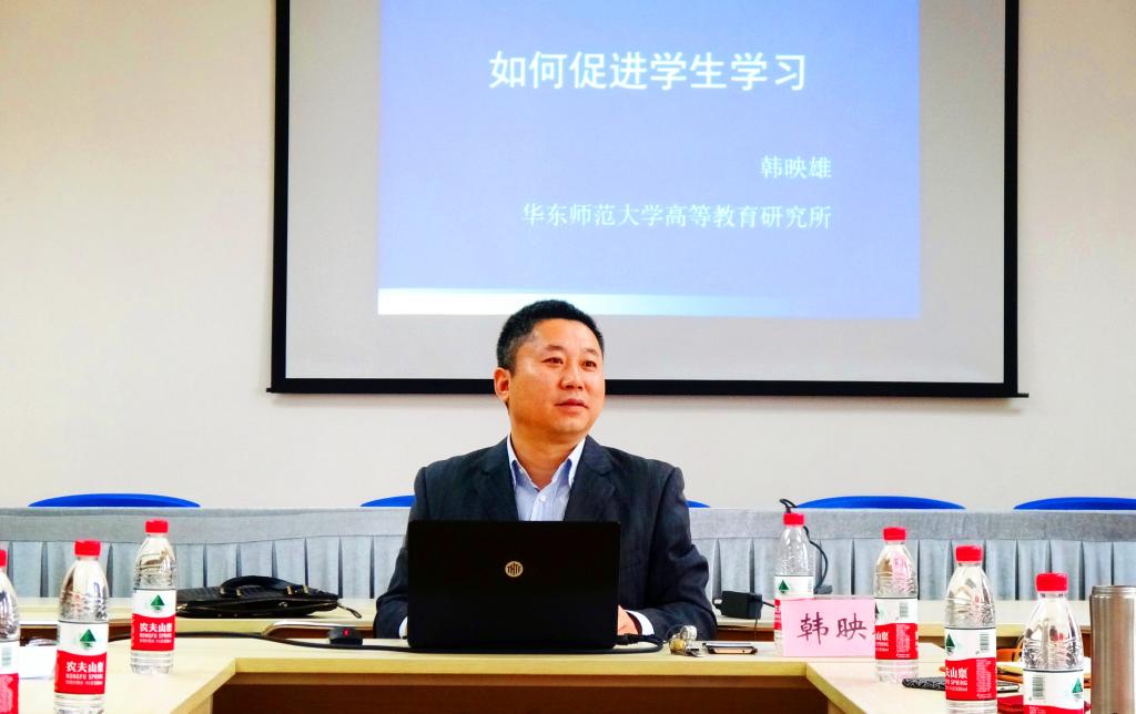 本网讯 4月12日,教师教学发展中心在排球馆104培训教室举办“绿瓦教学讲堂”第八期,中心特邀华东师范大学高等教育研究所韩映雄教授作题为《如何促进学生学习》专题报告,活动由教师教学发展中心常务副主任郭玉成主持,20余名中青年教师参加本次活动。