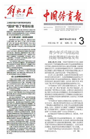 16.上海体育局官网上海体育2017-04-14《中国体育报:青少年乒乓球运动技能等级标准发布》