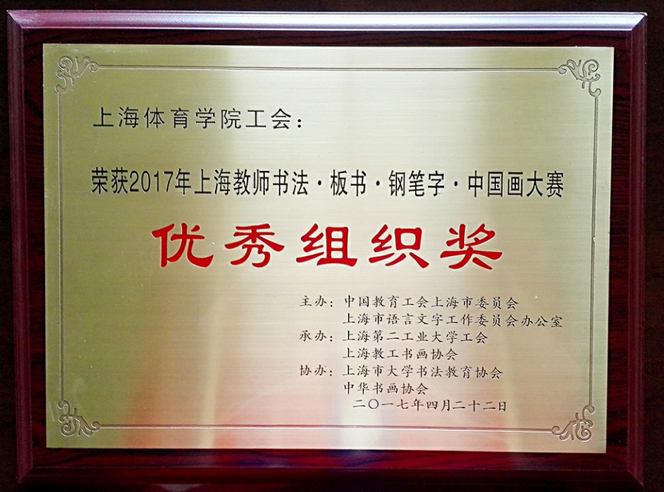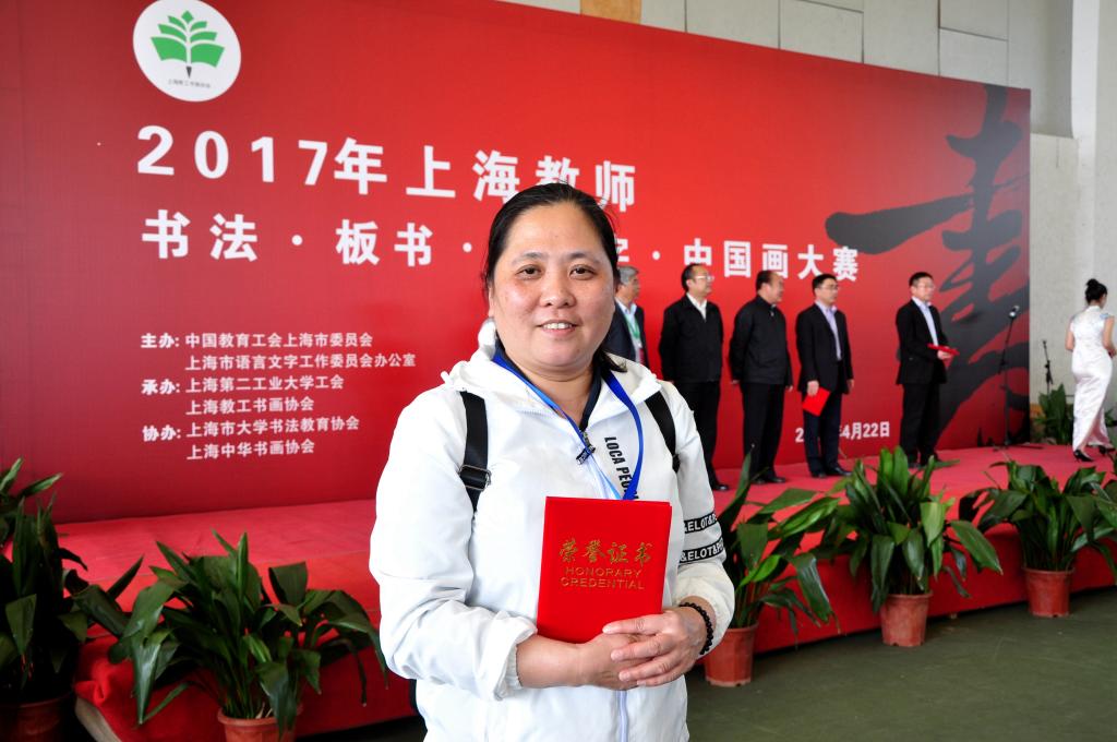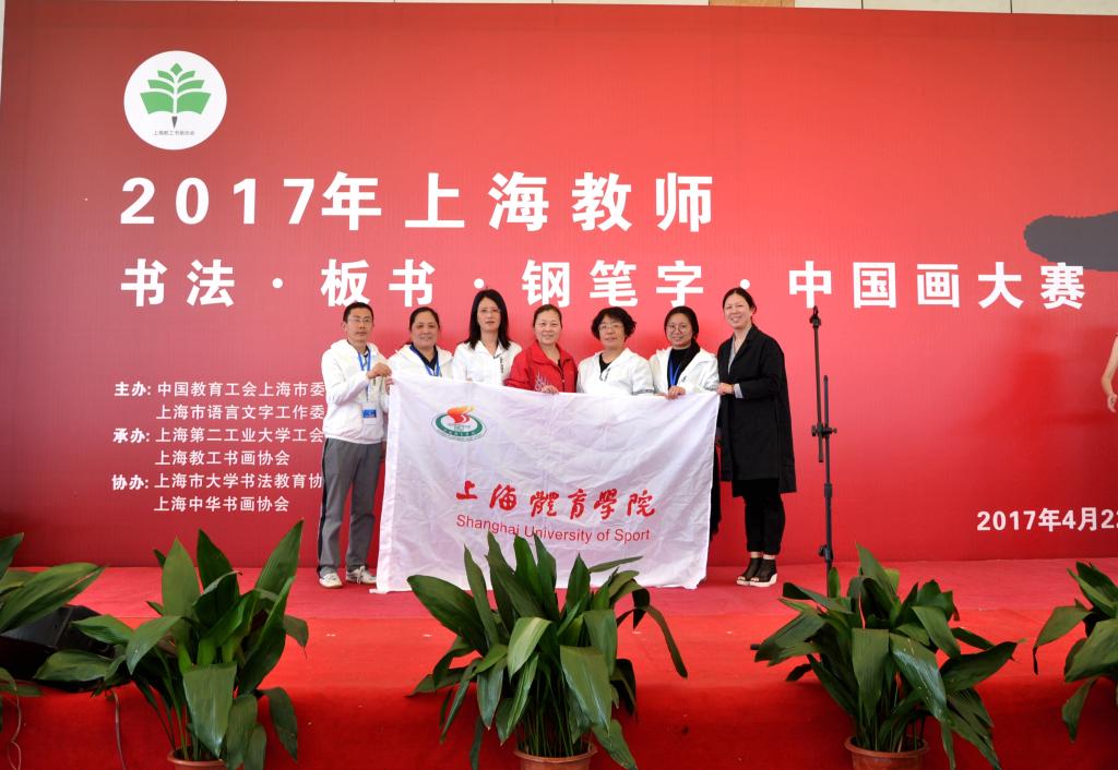 本网讯 4月22日,2017年上海教师“板书·书法·钢笔字·中国画”大赛在上海市第二工业大学举办。本次大赛是由中国教育工会上海市委员会主办,红足一1世选拔出6位教师作为代表,在领队、校教职工书法协会会长李蔚老师带领下参赛。
