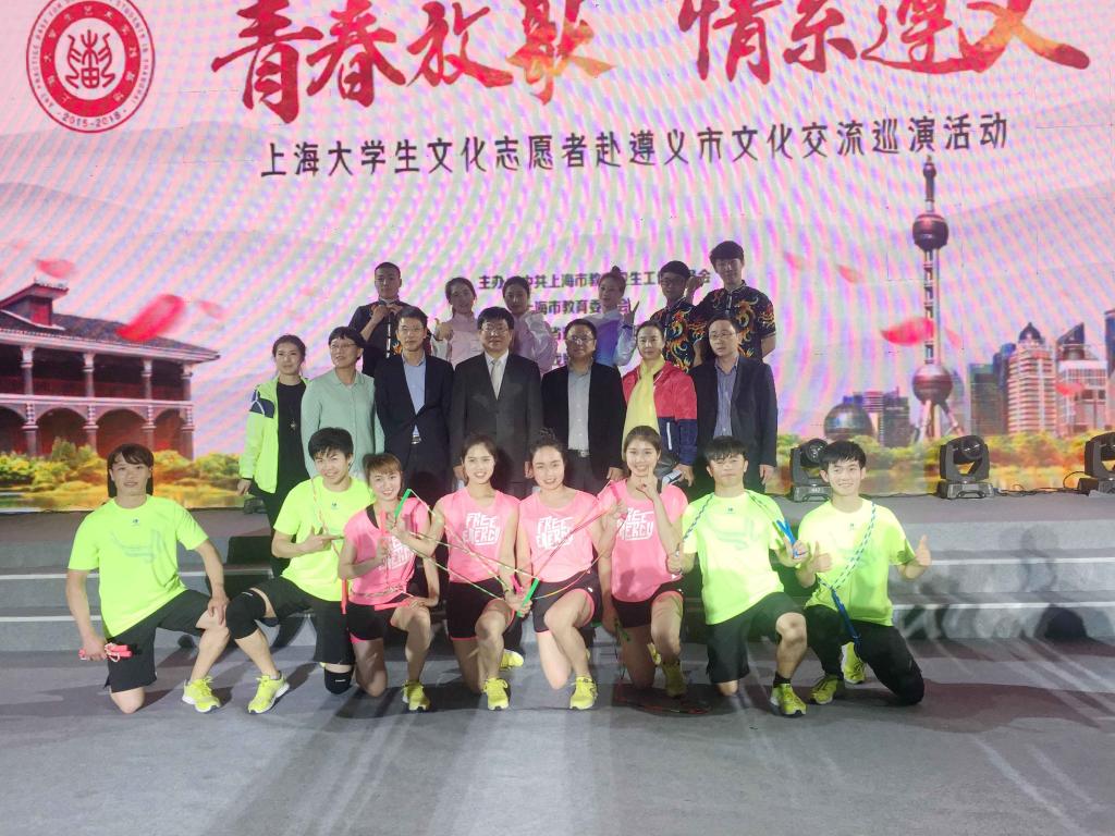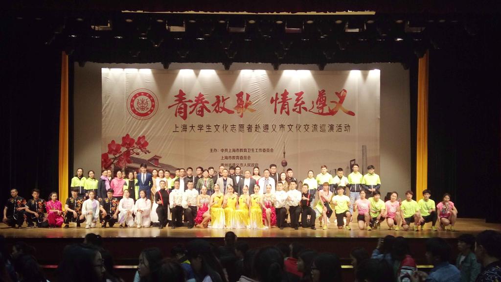 本网讯4月24日至28日,红足一1世17名师生应上海市教卫工作党委、市教委邀请,与上海多所高校的大学生文化志愿者近八十人组成艺术团,赴贵州遵义开展“青春放歌情系遵义”文化交流巡演活动。