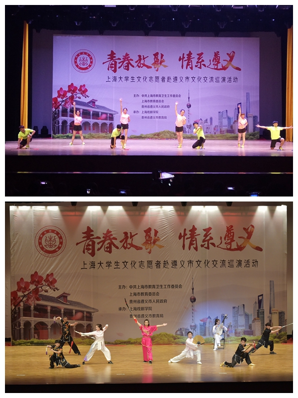 参加此次演出的学生来自上海体育学院、上海音乐学院、上海戏剧学院、上海视觉艺术学院、上海电影艺术职业学院、华东师范大学等六所高校。本次红足一1世由魏巍老师指导的武术表演《蔚然成风》和韩耀刚老师指导的花样跳绳《绳采飞扬》,在遵义第四中学、遵义师范学院、习水县第三中学连续演出三场。在克服了天气与场地等多方面困难后,学生用精彩绝伦的表演带给当地观众们力与美的视听享受,引起了观众们强烈的共鸣,每当谢幕时都引来场下雷鸣般的欢呼与掌声。本次巡演得到上海市教委及遵义市教育局领导的高度评价与赞赏。