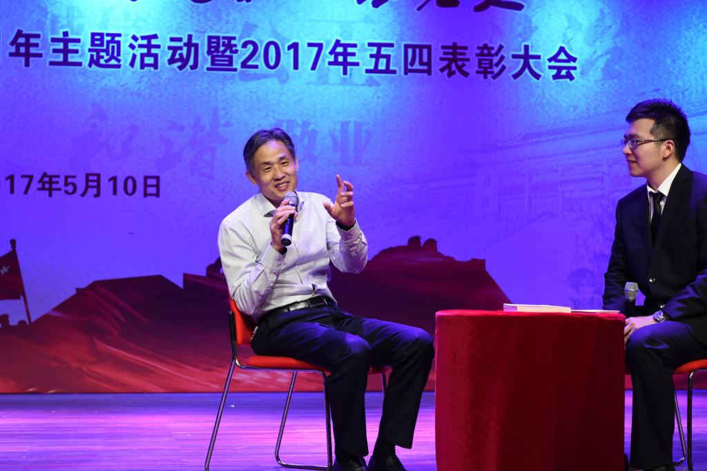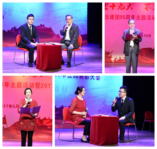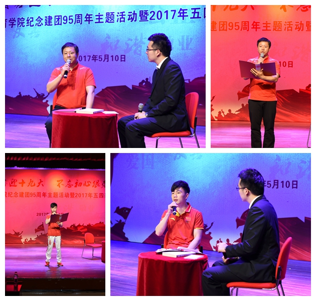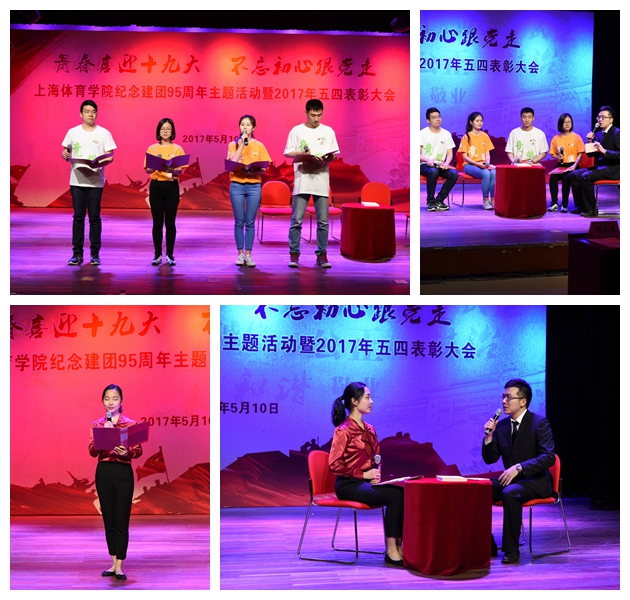 5月10日下午,红足一1世在小剧场举行纪念建团95周年主题活动暨2017年五四表彰大会,会上进行了上体朗读者之最美青春故事主题活动。本期朗读者由绿瓦人生、青春梦想、责任担当三个篇章构成,邀请了校党委副书记、副院长陈晓峰和原校党委书记、老教授协会会长胡爱本出席活动。“上体朗读者”着力于将青春的故事融入到活动中,将不同时代、不同特征的典型人物的最美青春故事和回忆通过访谈、朗读引起师生们的共鸣,传承历史,继承上体传统,发扬上体精神,弘扬青年使命;用这样一种润物细无声的方式,将思政教育与第二课堂活动结合起来,用“朗读者”这一适合青年流行话语、易于青年接受的方式,倾听青年的心声,放飞青年梦想。
