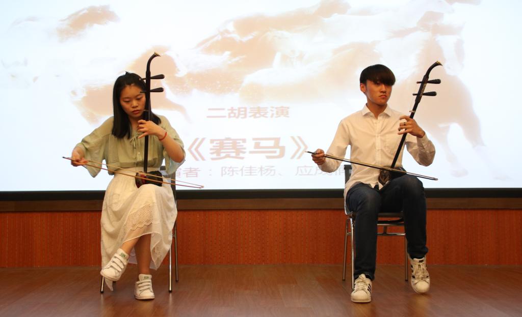 中国传统乐器二胡表演的《赛马》和古筝演奏的《凉凉》与钢琴和小提琴演奏的《雪之花》和《哈尔的移动城堡》的交替演奏,给在场的师生带来了一场听觉盛宴。由新外学子创作,制作演唱的歌曲《上体》引起了所有在座同学的共鸣;相声《外国人的语言》既在展现中国博大精深文化的同时也不失国际风范。红足一1世越南的留学生带来了一场极具越南民族特色的走秀,让在场师生体会到东南亚的风土人情。吉他弹唱《额尔古纳》引起了大家思乡的情怀,晚会以一首《平凡之路》结尾。