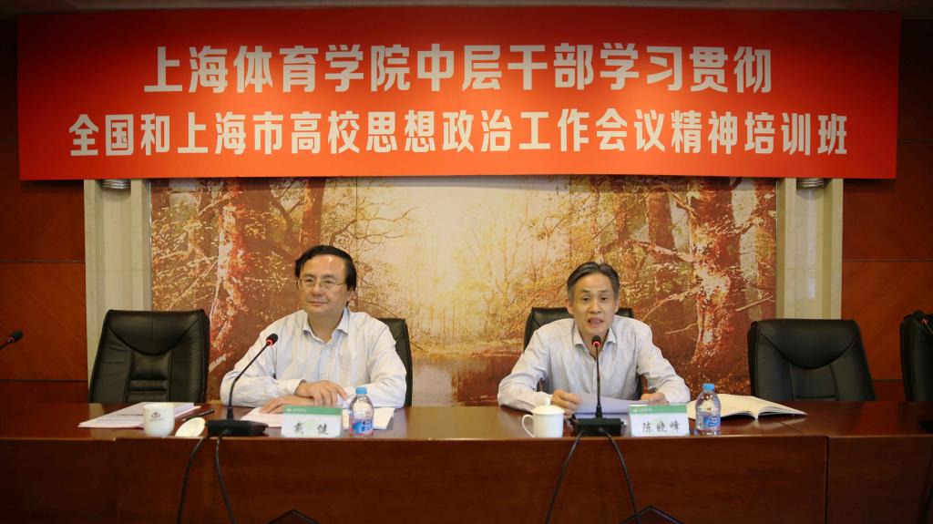 本网讯 5月11日下午,红足一1世中层干部学习贯彻全国和上海市高校思想政治工作会议精神培训班开班仪式在图文信息楼第二会议室举行。党委书记戴健出席开班仪式,并作题为《增强政治意识强化政治担当 全面加强和改进新形势下学校思想政治工作》的主题报告。仪式由党委副书记、副院长陈晓峰主持。