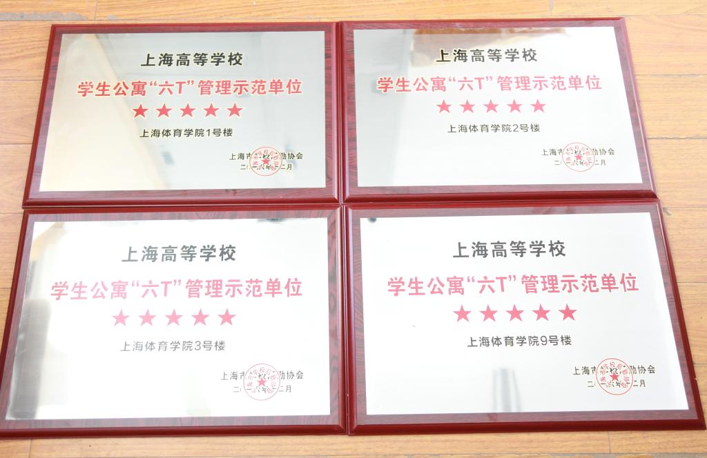 在2016年度上海高校学生公寓“六T”管理创建达标活动中,我院申报学生公寓1号楼、2号楼、3号楼及9号楼,在学校学工部、武保处、后服中心“三位一体”的共同创建和努力下,取得了显著成绩。4栋公寓楼全被评为“五星级示范楼”,也是沪上唯一一所百分之百“五星级”达标示范的高校。