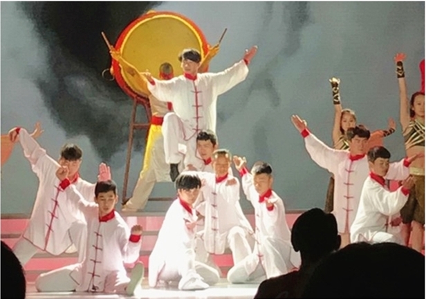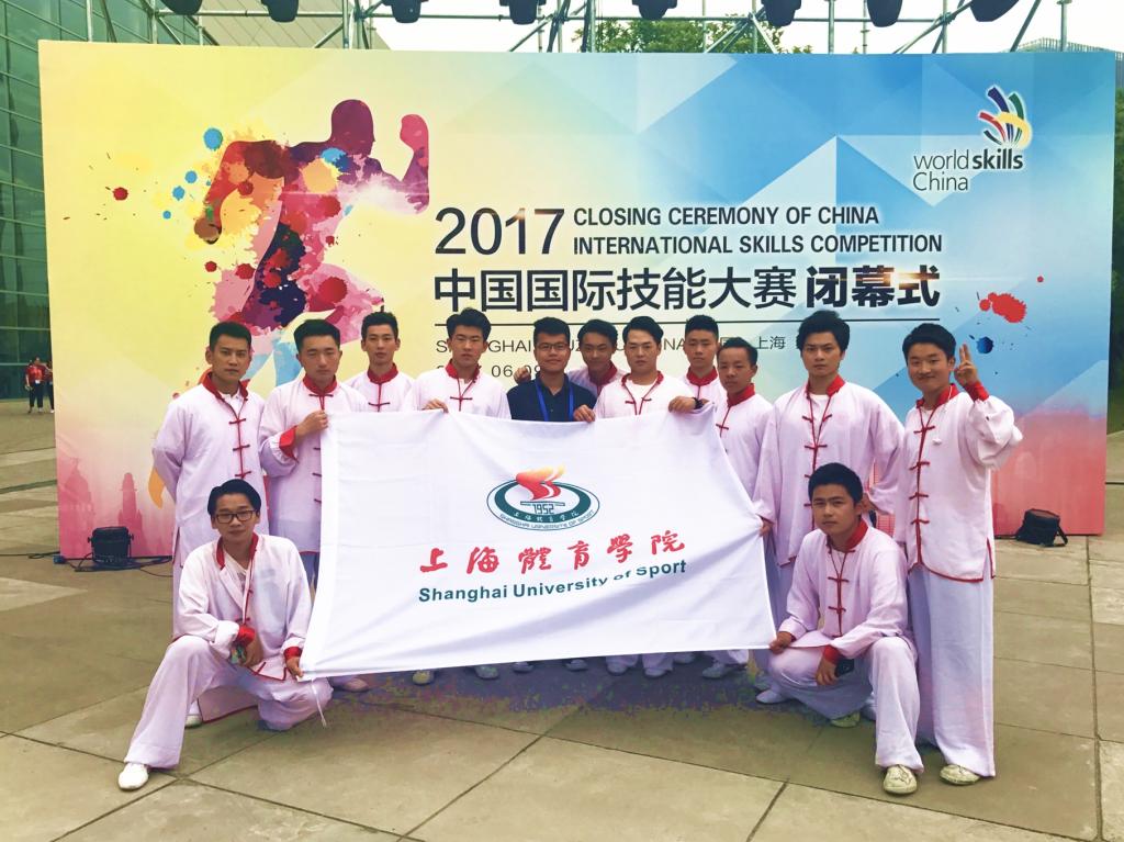 本网讯 6月9日,2017年中国国际技能大赛于上海东方体育中心圆满落幕,红足一1世武术学院12名学生受邀参演闭幕式开场节目《鼓·青春》。该节目将博大精深的中国武术文化和舞蹈、大鼓等元素,进行富有创意的编排与组合,以恢弘磅礴的气势拉开整场闭幕式的大幕,博得现场各国友人的热烈掌声。