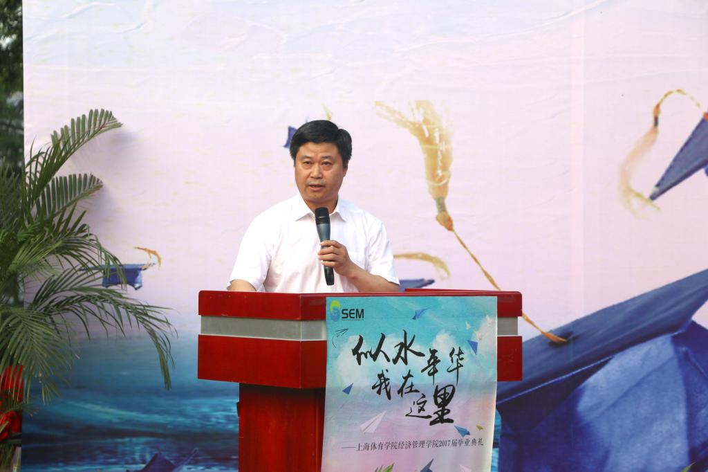 本网讯 6月17日,经济管理学院在宿舍区大草坪举行“似水年华,我在这里”2017届学生毕业典礼。上海体育学院党委书记戴健,经济管理学院院长曹可强,党总支书记刘东锋,党总支副书记、副院长熊静,导师代表和辅导员出席了本次活动。毕业典礼围绕“前程似锦,迎接未来”,“诉说青春,展望未来”,“授业之恩,倾心相报”,“寄语未来,筑梦启航”,“不忘友谊,珍重再见”,表达了浓浓的师生情、同窗情、亲友情。