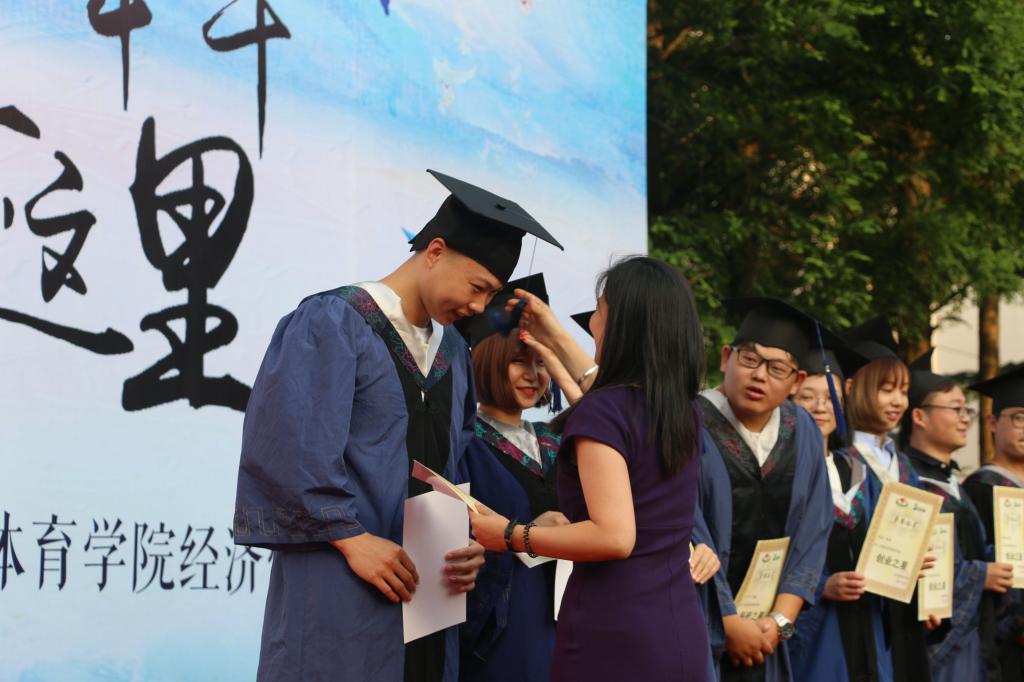 刘东锋、熊静分别宣读上海体育学院优秀毕业生、特色奖名单,并为其颁发证书、拨穗。刘东锋代表学院接受毕业生赠与礼物,一幅“I love sem”的油画作品。 曹可强寄语毕业生,永保初心,脚踏实地,追求卓越;敢于担当,甘于奉献,勇于奋进;豁达乐观,热爱生活,宽容自信。他表示,母校将永远站在他们身后,最诚挚地期待着,也最无私地支持着他们,盼望毕业生们从此刻出发、从这里出发,成为夜空最耀眼的星。