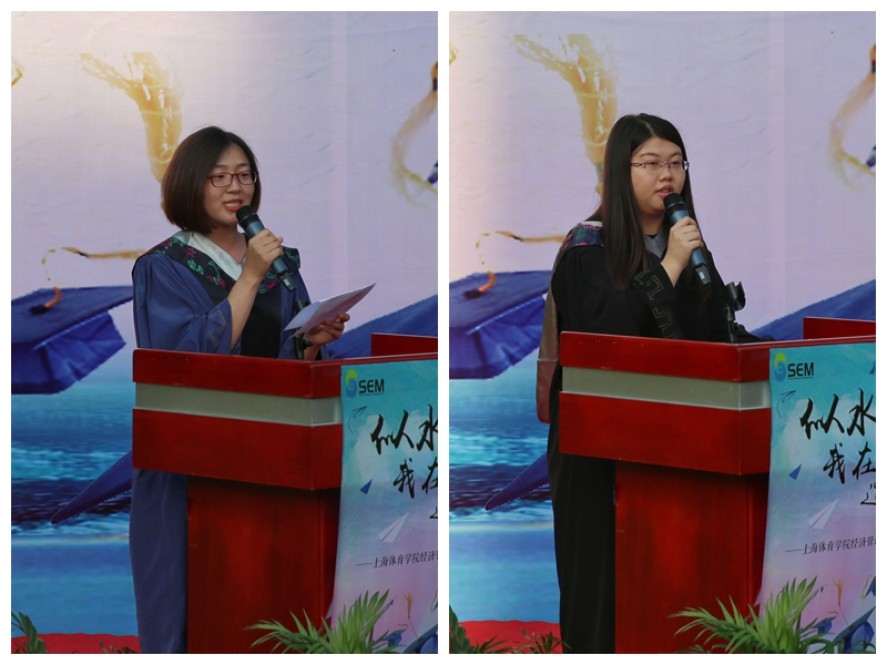 “三年的岁月,听起来似乎是那么的漫长,而当我们今天面对离别,又觉得它是那么的短暂。”研究毕业生代表王雯,本科毕业生代表樊珍在发言中,表达了对母校的怀念、不舍与感恩。2001届毕业生、上海泽璞投资管理有限公司执行董事张辉代表校友致辞,回首青葱岁月,感恩母校,祝福学弟学妹们前程似锦。
