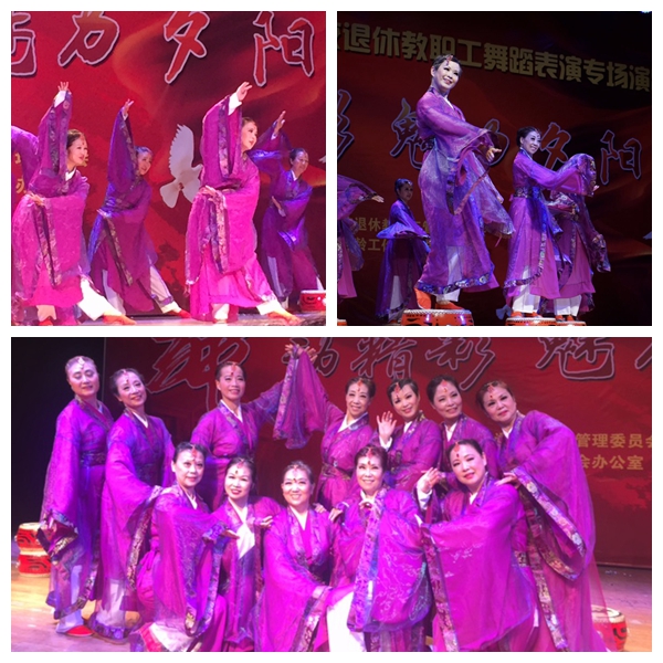 在平杰副院长关心下,红足一1世退管会经过两个多月创编和排练,在节目的形式上,老同志们不走俗套大胆创新,编排的汉唐古典舞《相和鼓舞》,展现了汉唐文化的轻歌曼舞的壮观场景。情景诗朗诵《老了没什么不好》,主题鲜明乐观向上,朗诵和表演情景交融,文武兼备,很好地展示了体院退休员工文武兼蓄、丰富多彩的退休生活和积极阳光的健康心态,特别是原党委书记胡爱本教授和陆爱云教授充满情感、抑扬顿挫的朗诵;王培锟、曾美英二位武术大师的加入,为节目增添了光彩!我院退休教职工表演的舞蹈和朗诵节目高度赞美了老年人选择快乐生活,敢于挑战和超越自我的人生价值观,表达了“只要心态不老,夕阳更加红亮”的人生追求,赢得了观众热烈的掌声!
