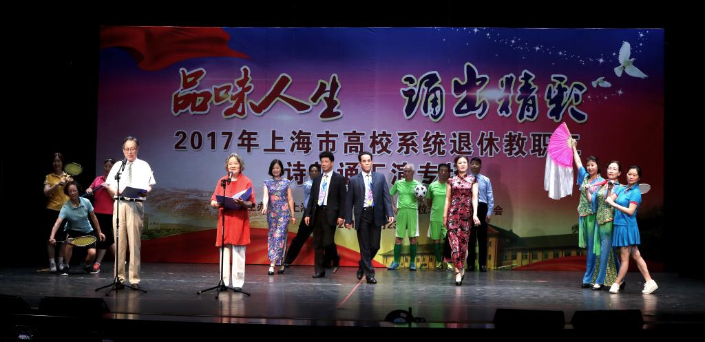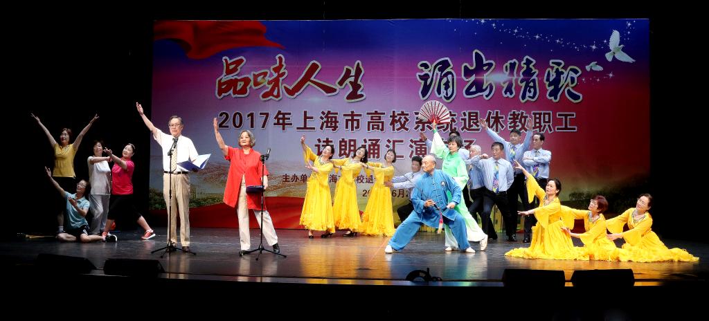 本网讯 6月份,由上海市高校退管会组织的高校系统“舞动精彩,魅丽夕阳”舞蹈专场和“品味人生,诵出精彩”诗词朗诵专场分别在华东师范大学和上海师范大学举办。我院退管会精心组织了由30余位老同志参与的两个节目参加了汇演。