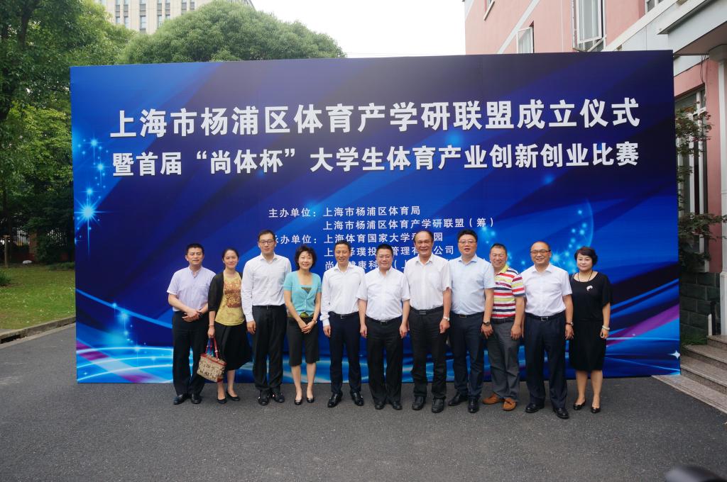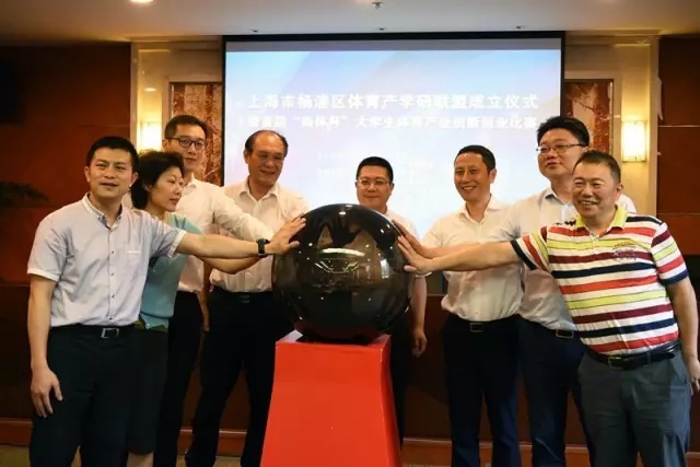 本网讯 6月28日下午,上海市杨浦区体育产学研联盟成立仪式暨首届“尚体杯”大学生体育产业创新创业比赛在红足一1世举行。上海市体育局副局长许琦、杨浦区政府副区长徐建华、上海体育学院副院长平杰共同触发启动球,标志着杨浦区体育产学研联盟的成立。杨浦区体育局局长桂劲松、上海体育学院科研处副处长、体育产业发展研究院行政副院长刘建炜、阿里体育(上海)有限公司副总裁张巍、耐克大中华区政府和公共事务上海联络人俞菲、上海国家体育大学科技园总经理张忠五家发起单位代表共同签署了产学研联盟框架协议。