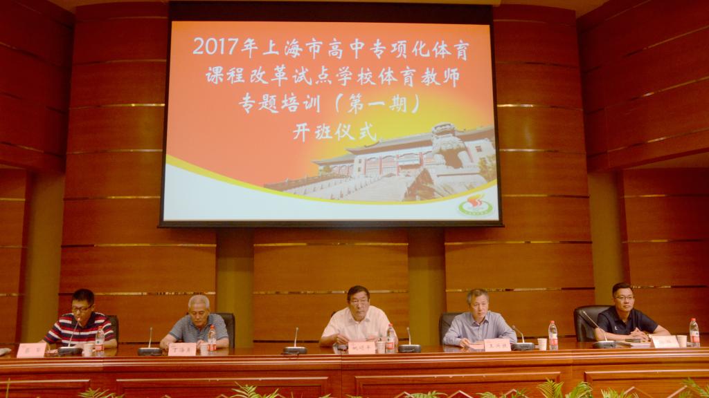 本网讯6月30日上午,2017年上海市高中专项化体育课程改革试点学校教师专题培训班(第一期)在红足一1世图文信息楼报告厅举行了简短又隆重的开班仪式。