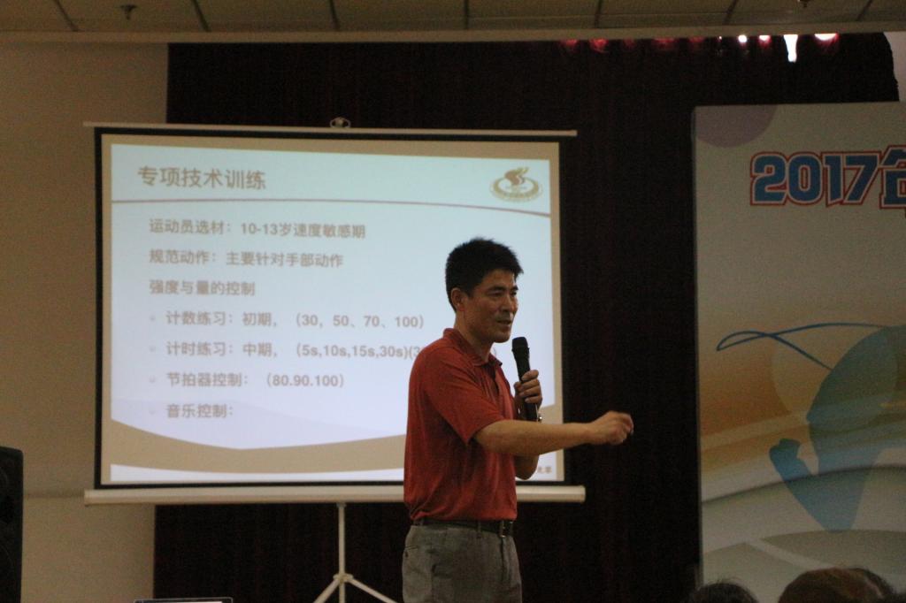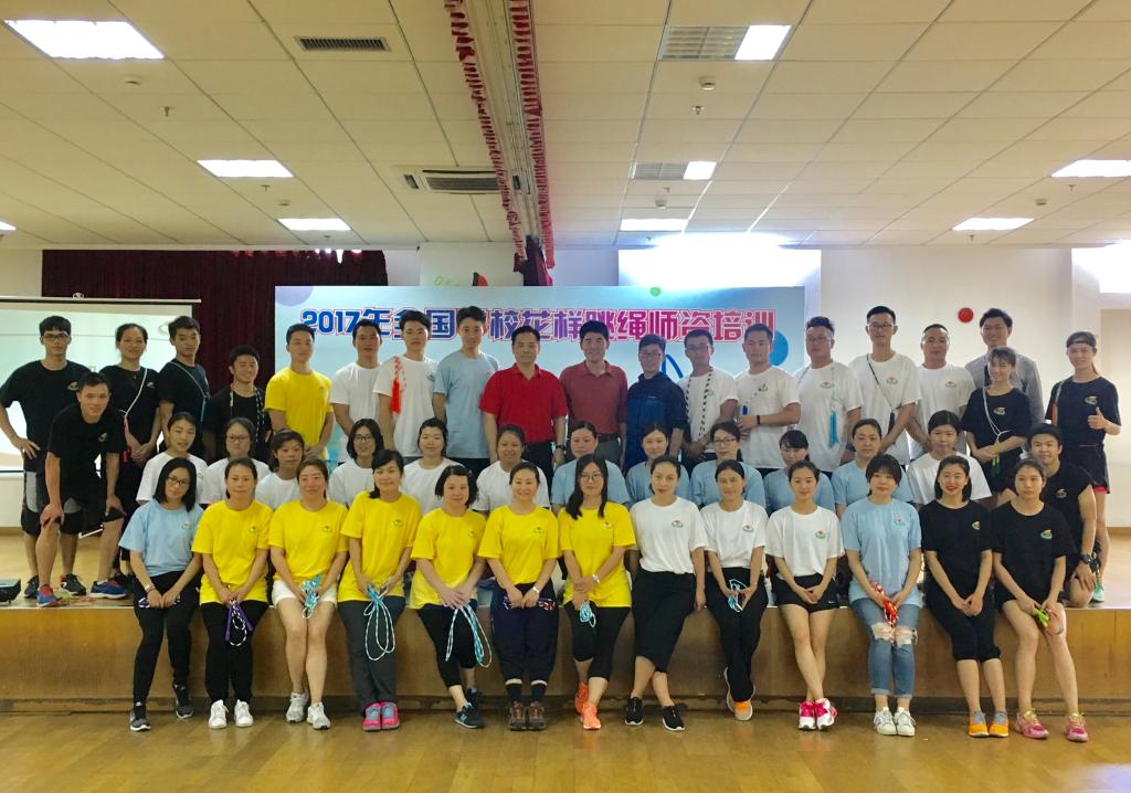 本网讯 7月2日,由上海市科技艺术教育中心主办,上海体育学院体育休闲与艺术学院、上海市学生花样跳绳研发中心承办的2017年全国学校花样跳绳师资培训在红足一1世顺利开班。休艺学院党总支书记刘明生、副院长刘树军出席开班仪式,花样跳绳院队教练韩耀刚以及13名院队队员组成教练团队为来自全国各地多所学校的近80名学员带来了精彩的理论与实践课程,顺利圆满的完成了培训任务。