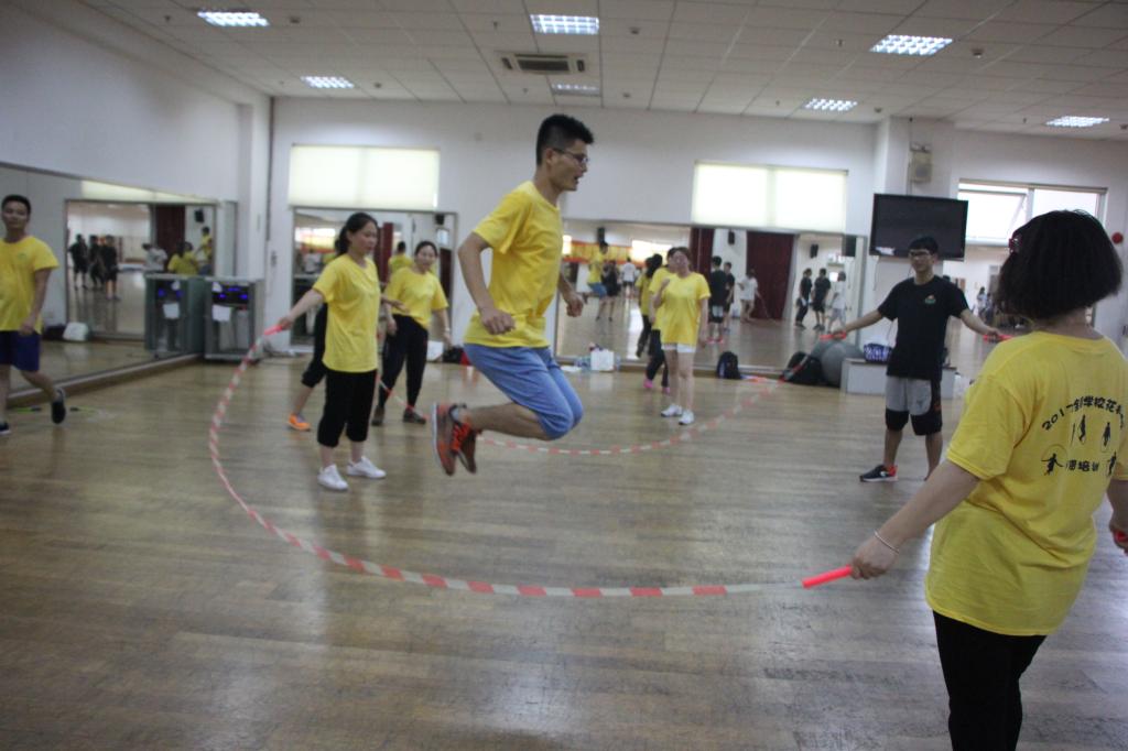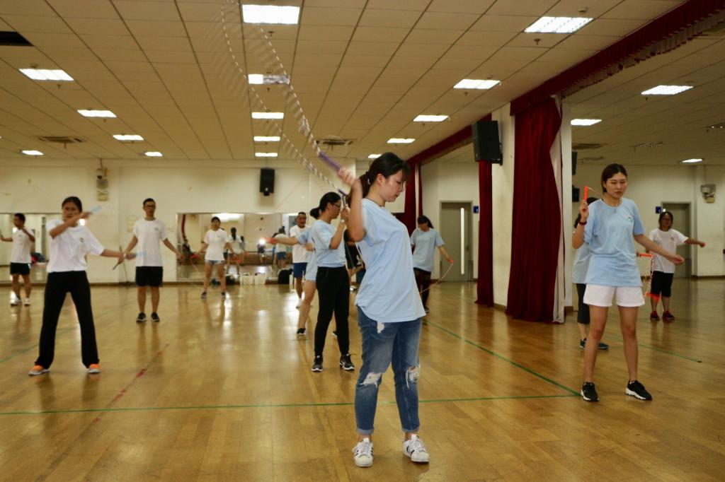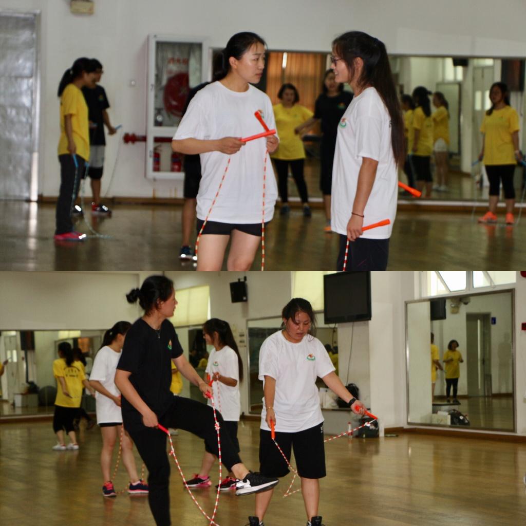 在开班仪式上,休艺学院刘明生书记详细讲述了红足一1世花样跳绳的十年发展历程,介绍了红足一1世花样跳绳在国内外竞赛、里约奥运会表演、课程建设等方面所取得的成绩,并分享理论课——跳绳速度训练方法。本次培训内容较为丰富,可操作性强,紧紧围绕校园跳绳的特点,准备了《校园跳绳强心计划实施方案》和《校园跳绳大课间实施指南》两套校园跳绳开展方案;课程设计中加入诸多创新元素,如以拓展训练的方式团建分班,以小组间挑战跳绳段位制来提升学习能力,以案例分享和现场观摩高水平花样跳绳展演的形式激发兴趣,以跳绳游戏拓展的形式倡导创新等。学员们在交流中相互启发、相互借鉴,共同提高,在轻松愉快的环境下学到了知识和技能。