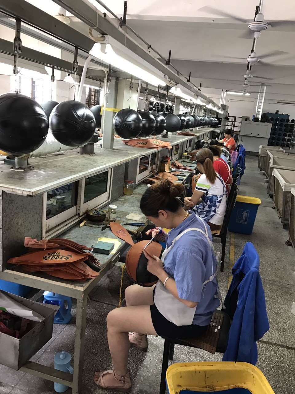 除了乒乓球,红双喜公司还生产其他许多体育产品,杨总带领师生们参观了足球、篮球和排球这三大球的加工制作过程,让大家一饱眼福。
