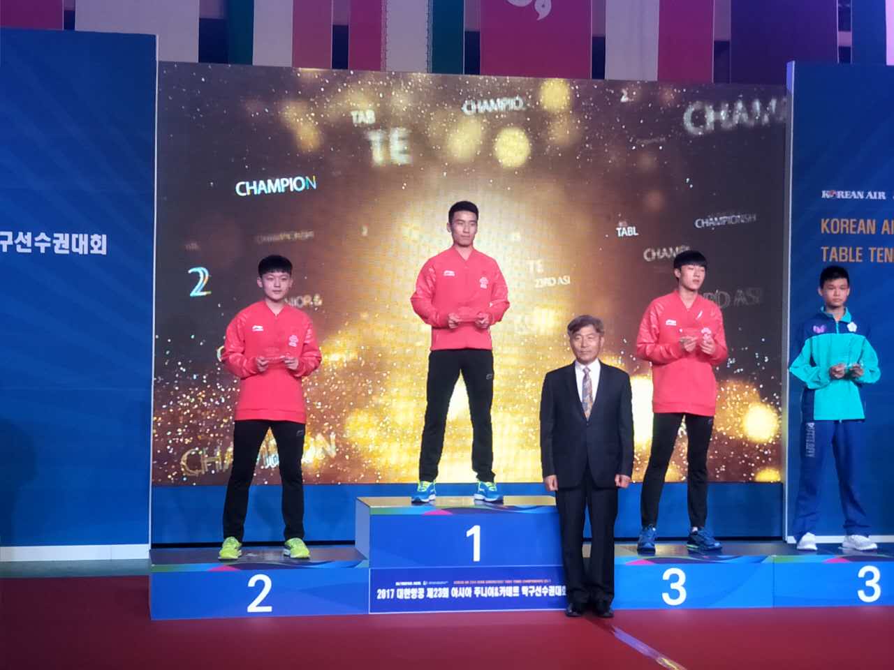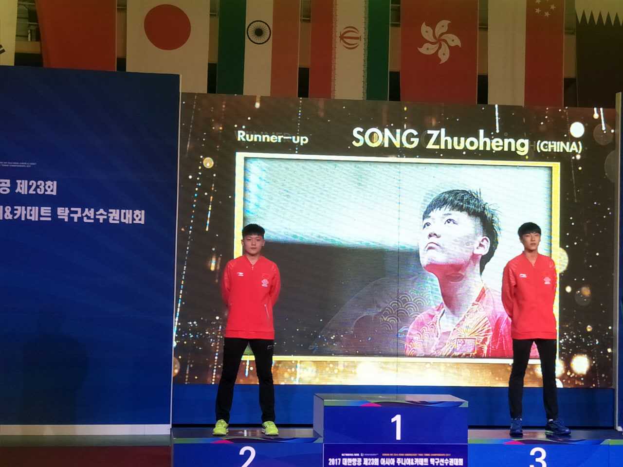 本网讯 第23届亚洲青少年锦标赛于6月29-7月4日在韩国牙山举行,由中国乒乓球学院培养的小将宋卓衡代表中国队征战本次亚少比赛,凭借出色的表现收获一冠一亚——少年组男子团体冠军和男子单打亚军。