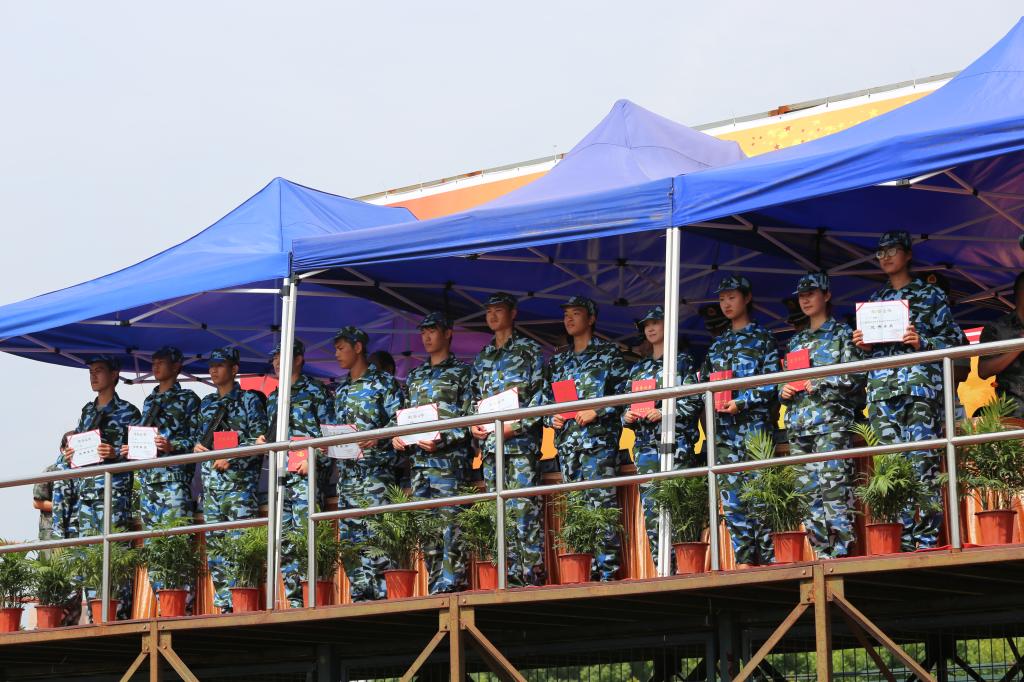 随后,毛丽娟宣布了军训团表彰决定,140名同学荣获“优秀学员”称号,10名同学荣获“优秀通讯员”光荣称号,另有8名承训教官荣获“优秀教官”光荣称号。在全体军训团官兵的共同见证下,领导嘉宾为获奖代表颁奖。
