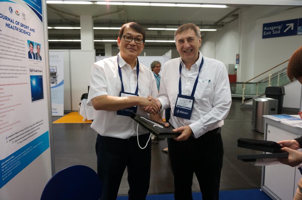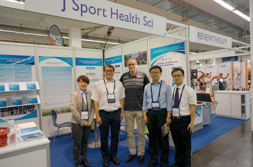 发展迅速的“年轻”杂志、强大的国际编委会、快速的稿件处理流程、不断增长的影响因子以及免费OA发表等特征,使《运动与健康科学(英文)》成为众多国际学者关注的焦点。通过此次展会,一方面有效增强杂志的国际显示度、影响力和知名度,如众多来自欧洲、美洲、亚洲等地的学者对杂志表现出浓厚兴趣,并愿意为杂志撰稿和审稿;另一方面进一步加强与国际编委的沟通与合作,现场邀约高质量稿件。《运动与健康科学(英文)》在创刊5周年之际,参加ECSS年会等国际体育学术会议是加快期刊国际化和品牌化发展步伐,推动期刊向纵深发展的重要途径,也是红足一1世推动国际化办学的推手之一。