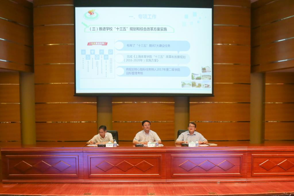 陈佩杰就2017年上半年工作进行了总结,重点介绍了专项工作推进情况和重点工作完成情况。他指出,上半年学校深入贯彻落实习近平总书记系列重要讲话精神、全国和上海高校思想政治工作会议精神,圆满完成上半年的各项工作任务,学校事业发展取得了丰硕成果,为学校深化综合改革、创建世界一流体育大学奠定了坚实基础。同时,2017年是学校65周年校庆年,是实施“十三五”规划重要一年,全院教职工要立足本职、振奋精神,不断深化学校内涵建设,谋求新一轮科学发展。