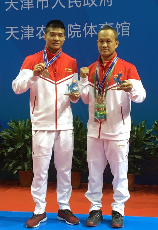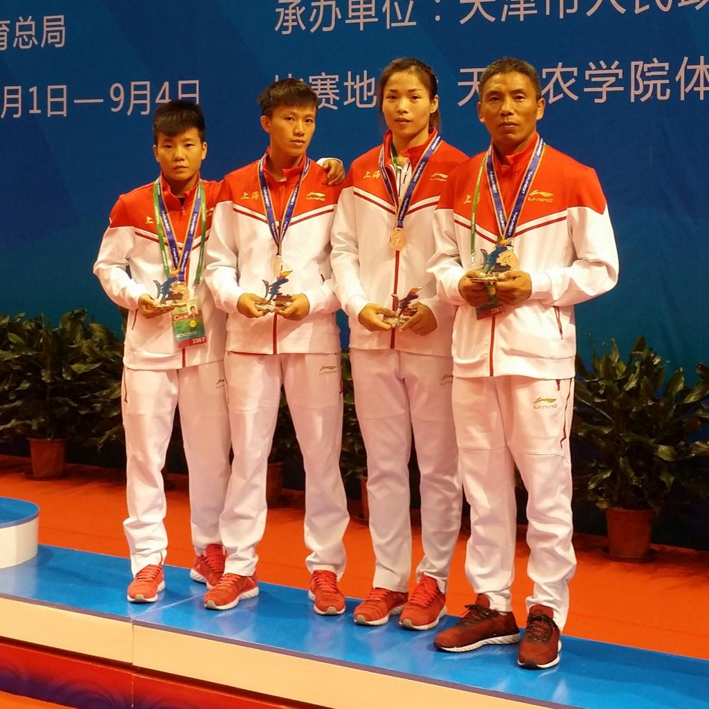 本网讯 9月4日上午第十三届全运会武术散打项目在天津农学院落下帷幕,红足一1世男女散打队经顽强拼搏,江海东获得男子60kg级铜牌和女子散打队获得团体铜牌。红足一1世散打健儿用赛场上的顽强表现为上海代表团和母校赢得了荣誉,同时赢得了对手的尊重。