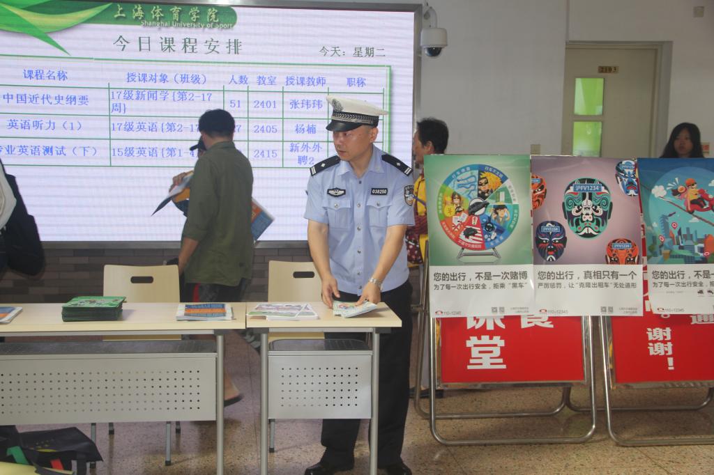 本次活动是由市联席办牵头上海市教委、市交通委、市公安局等部门,在全市高校同步开展。为做好此次宣传,武保处和杨浦交警四大队通过悬挂横幅、张贴海报、设立宣传摊、发放宣传资料和纪念品等方式,向广大学生讲解非法客运的危害性,呼吁大家抵制非法客运,进一步增强红足一1世学生的乘车安全意识。