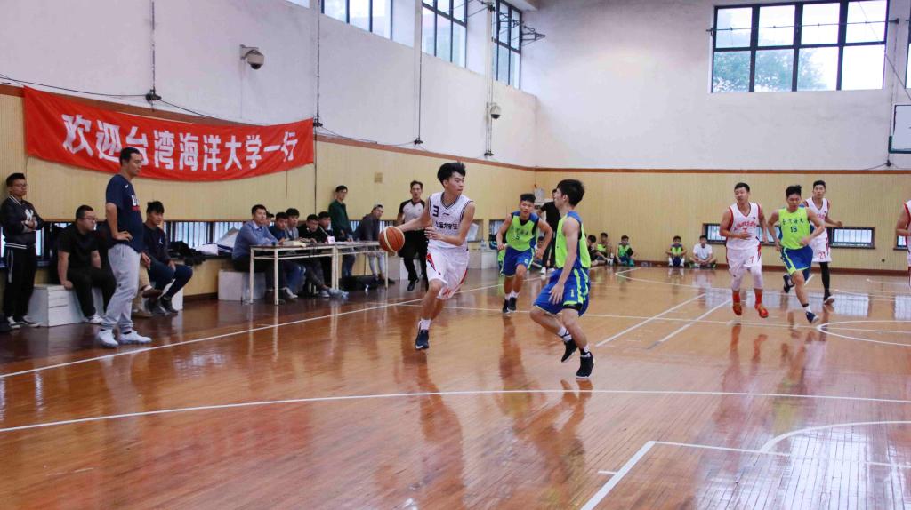 台湾海洋大学男篮队是台湾高校中男子篮球水平非常高的队伍,此行来沪主要与上海的几所高校进行比赛交流。本次台湾海洋大学男篮与我院男篮的友谊比赛由上海市台办牵头,副院长平杰进行了全程的协调工作,特力邀两位篮球国际级裁判:胡吉、张志伟到现场担任裁判工作,在我院港澳台办公室及体训学院的协助安排下圆满结束。此次比赛充分展现了两岸大学生积极向上,勇于拼搏的体育精神风貌,诠释了体育友谊的精神内涵!