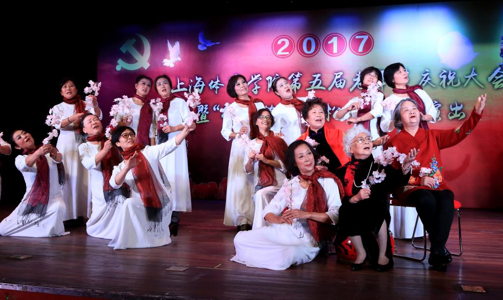 九时三十分许,院退管会党总支书记、常务副主任李芳宣布庆祝会开始,她发表了热情洋溢的欢迎词,接着副院长王兴放致辞,他对老同志的到来表示热烈的欢迎,对老同志为学校的建设发展作出的贡献表示衷心的感谢。王副院长还介绍了学校体育学入选国家一流学科建设和争创世界一流体育大学的举措。老同志十分欣慰,对学校入选“双一流”学科建设表示由衷的祝贺。他们表示,老牛更解韶光贵,不用扬鞭自奋蹄,愿意为学校的“双一流”建设贡献智慧和力量,余热生辉耀绿瓦,愿与学子伴青松。