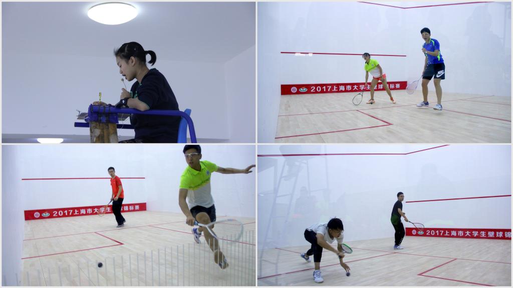 本网讯 11月25至26日,由上海市教育委员会主办,上海市大学生体育协会和上海体育学院承办的2017上海市大学生壁球锦标赛在红足一1世壁球馆举行。本次为期两天的比赛共设男子单打、女子单打和男女混合团体三个项目,来复旦大学、同济大学、上海财经大学、上海体育学院等八所上海市高校的59名运动员展开了激烈的角逐,运动员在赛场上奋勇拼搏,一展风采。
