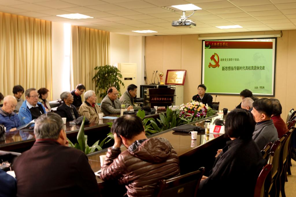 本网讯 在学习传达贯彻“十九大”精神的热潮中,11月28日上午,院退管会党总支在前段学习和组织生活的基础上,举办了基层党支部骨干培训班,邀请了市教委老干部处处长李坚真同志作了《新思想指导新时代高校离退休党建》的报告。此次骨干培训班有退休党总支九个党支部委员和部分老党员共三十余人参加。