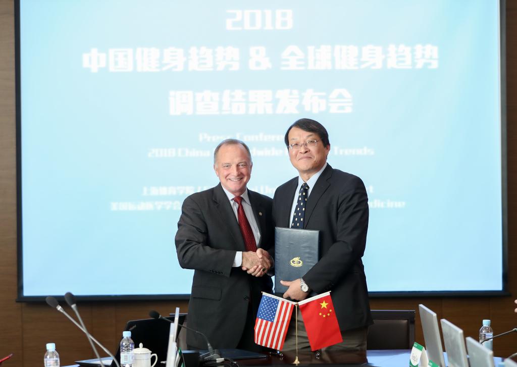 发布会上,上海体育学院与美国运动医学学会签署了未来五年的合作协议,继续联合开展中国健身趋势调查。为了更好地开展中国健身趋势调查,此次发布会也邀请了上海体育学院、上海健身健美协会、巅峰减重、锐星健身、耐克中国、特牛体育、贝菲特健身、ONEFIT、咕噜咕噜、上海体育职业技能发展中心等行业机构的专家为未来中国健身趋势调查进行献言献策。自2007年起,ACSM连续11年发布了的全球健身趋势报告,旨在预测全球健身行业/市场未来一年发展的趋势,该报告已成为全球健身行业/市场进行课程设计、产品研发和人才培养的一个重要风向标。