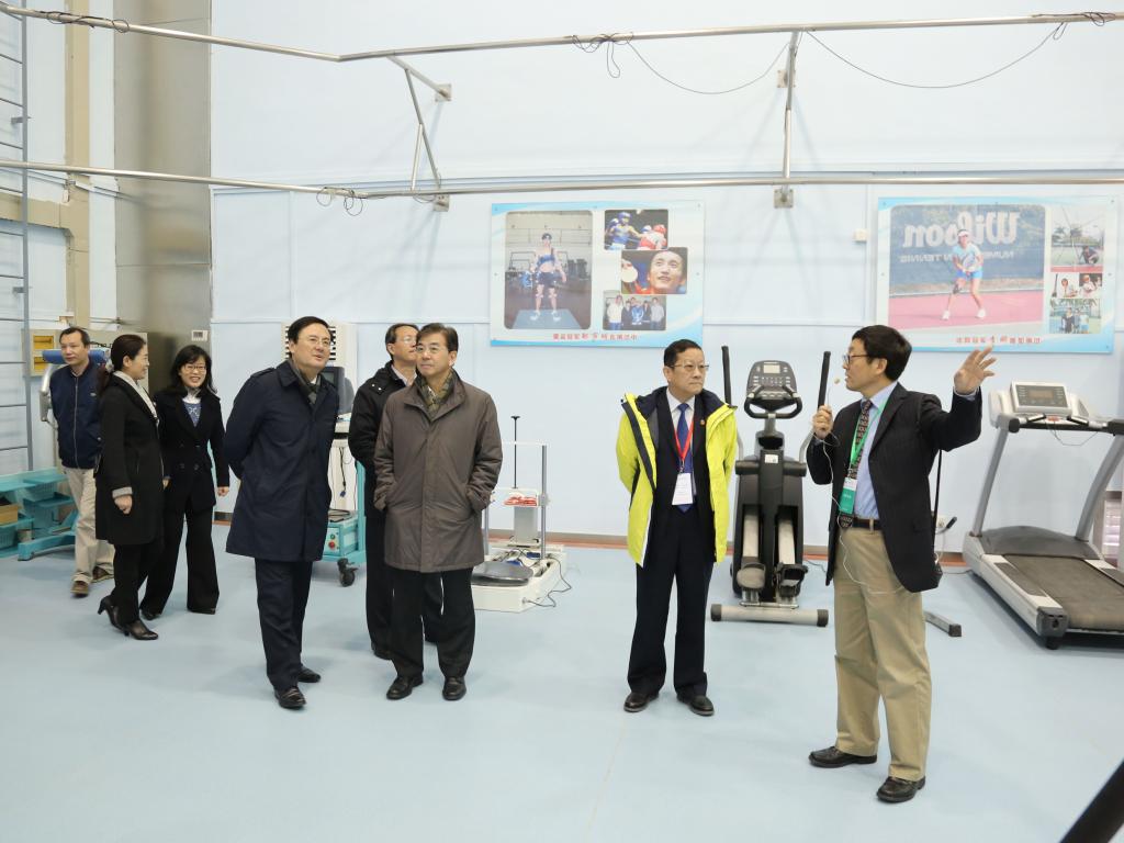 见面会后,校领导陪同专家们参观了学校建校65周年办学成就展,专家们集中考察了中国武术博物馆、体能训练实验室、运动科学学院、上海体育国家大学科技园等实验实训场所。