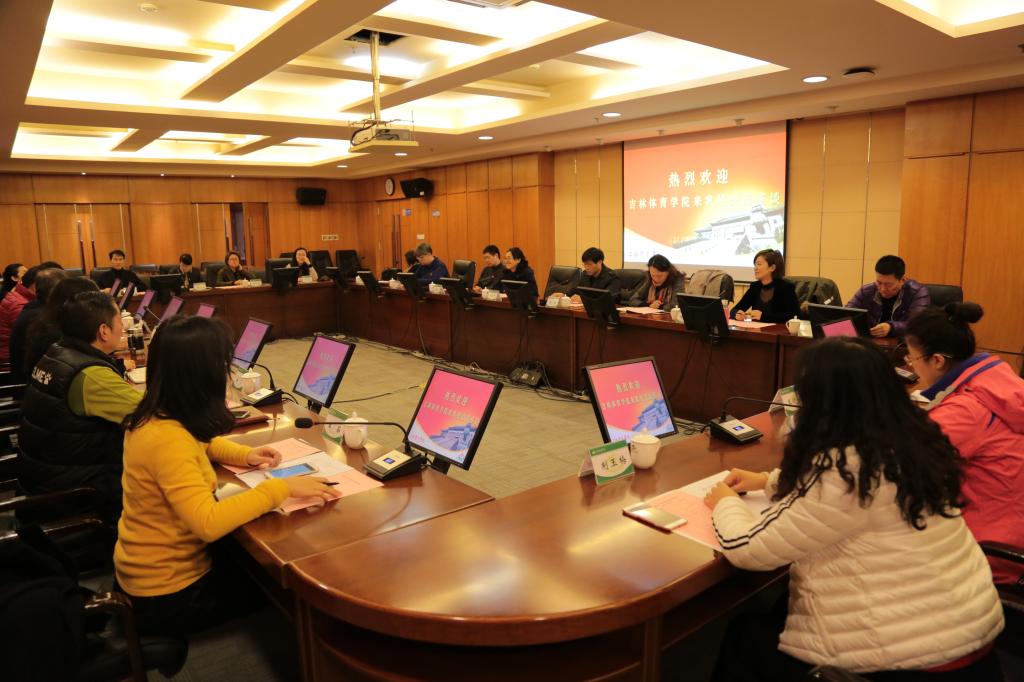 王兴放副院长代表学校对吉林体育学院代表团的到访表示热烈欢迎,并介绍了学校建设发展情况。会上,双方就专业建设、人才培养、实训体系建设、毕业生就业、冰雪学院的建设等工作进行了交流座谈。