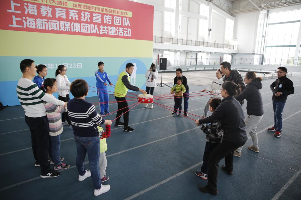 本网讯 12月23日下午,2017年上海教育系统宣传团队暨上海新闻媒体团队共建活动在红足一1世室内田径场举行。红足一1世党委副书记、纪委书记詹萌出席活动并致辞。市委宣传部新闻处处长俞旻骁、上海教育新闻宣传中心的工作人员,来自上海各大媒体教育条线的记者及其家属近百人齐聚上海体育学院,开展团建活动。