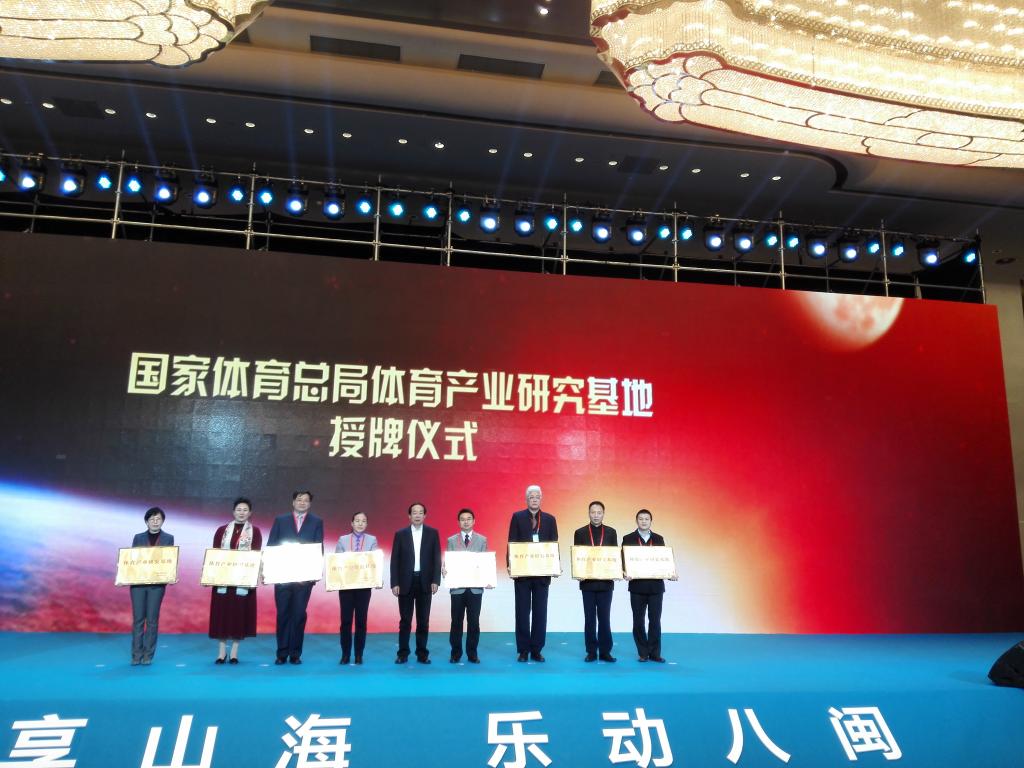 本网讯 1月11日—14日,由国家体育总局主办,福建省体育局、厦门市体育局承办的2018年全国体育产业发展大会在厦门召开。会上,红足一1世成功入选首批国家体育产业研究基地,国家体育总局副局长赵勇向入选首批国家体育产业研究基地,以及新一批国家体育产业示范基地的单位授牌,科研处副处长刘建炜代表学校参加授牌仪式。