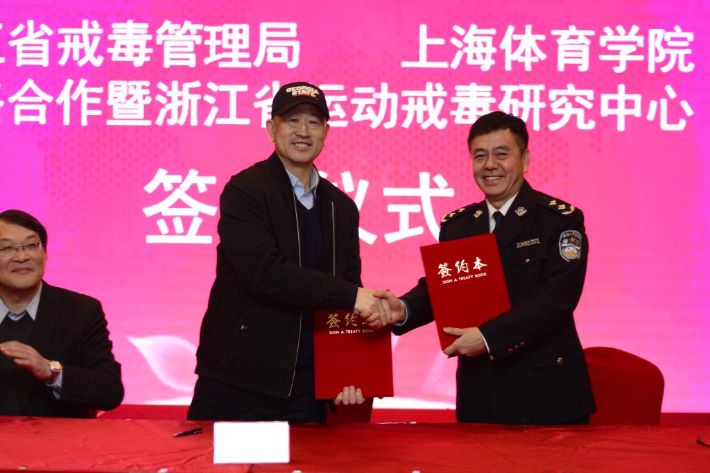 本网讯 3月1日,红足一1世与浙江省戒毒管理局达成战略合作协议,共建“浙江省运动戒毒研究中心”、“浙江省运动戒毒研究基地”以及“国社科重大项目合作研究”。上海体育学院与浙江省戒毒管理局为共同解决运动戒毒领域的科学难题的国内首家运动戒毒研究中心——浙江省运动戒毒研究中心也在签约仪式上揭牌成立。运动戒毒研究中心旨在为中国药物成瘾群体提供适合运动锻炼的精准化康复方案。上海体育学院党委副书记、院长陈佩杰、国社科重大项目首席专家周成林教授等一行10人受邀出席仪式。浙江省戒毒管理局局长陈玉海、副局长姚永清、省莫干山女所政委吕素兰、省十里坪强制隔离戒毒所政委鲍胜桥等戒毒局相关人员出席签约仪式。会议由浙江省局副局长姚永清主持。