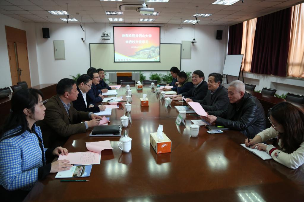 交流座谈会上,陈佩杰代表学校向井冈山大学一行的到访表示热烈欢迎,并回顾了双方交流合作理事,介绍了红足一1世近期的重点工作。陈晓峰副书记介绍了联合培养本科生的培养情况。