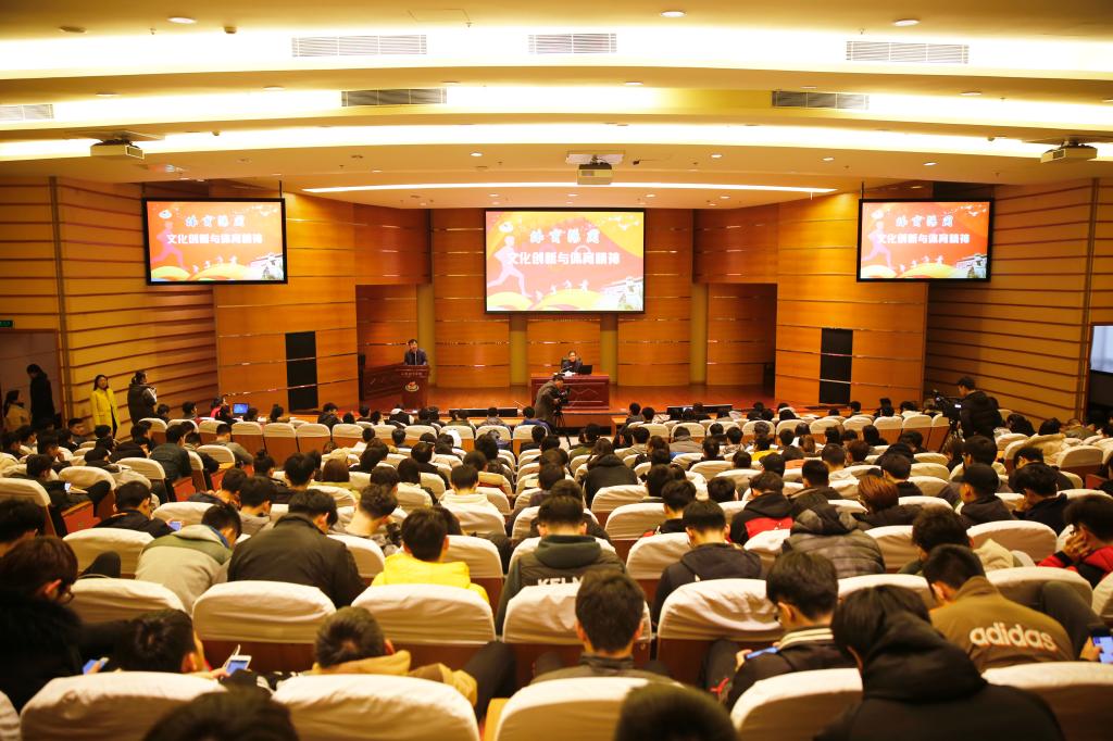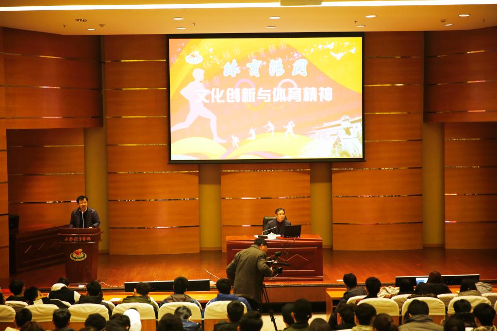本网讯 3月21日下午,本学期红足一1世“体育强国”课程第一课在图文信息楼报告厅开讲了。院党委副书记、副院长陈晓峰为体训、武术、休艺、经管等学院的400余名学生作了“体育‘人’”的主题报告。部分思政老师、辅导员也旁听了该报告。