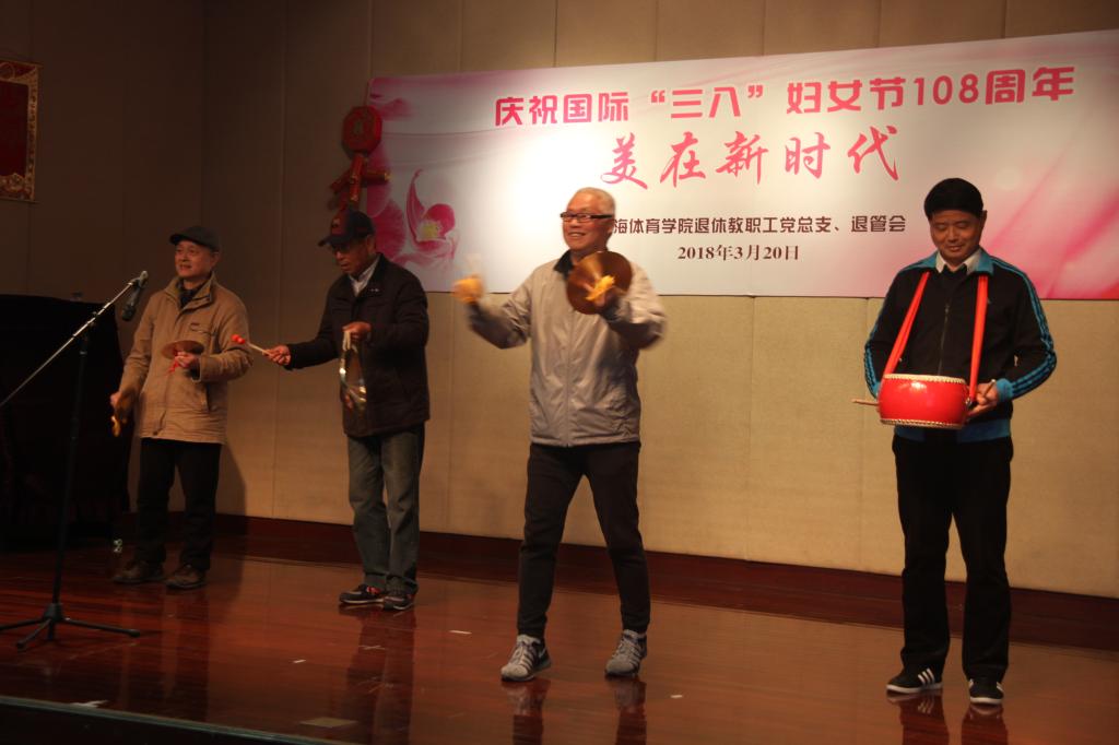 联欢会由胡爱本和龚依琴同志主持。全部表演的节目都是老同志们自编自演。其中由四位男同胞表演的三句半《美在新时代》,展现了在新时代老同志们的美好生活,也代表全体男同胞对女同胞“三八”节的美好祝愿!整个演出热烈、精彩,节目短小精悍,掌声、笑声不绝于耳,深受女同志欢迎!由武术学院张云崖教授当场教学的《脊柱调理养生功》,专门为女同胞设计的养生功法现场教学,台上台下互动,热闹非凡。由老同志表演的舞蹈即曼妙多姿,又动感十足;古典舞、韵律操、旗袍秀、小合唱等节目呈现出老同志们歌颂美好生活,祝愿祖国更加强盛的美好愿望,展现新时代老同志们健康快乐的精神风貌。