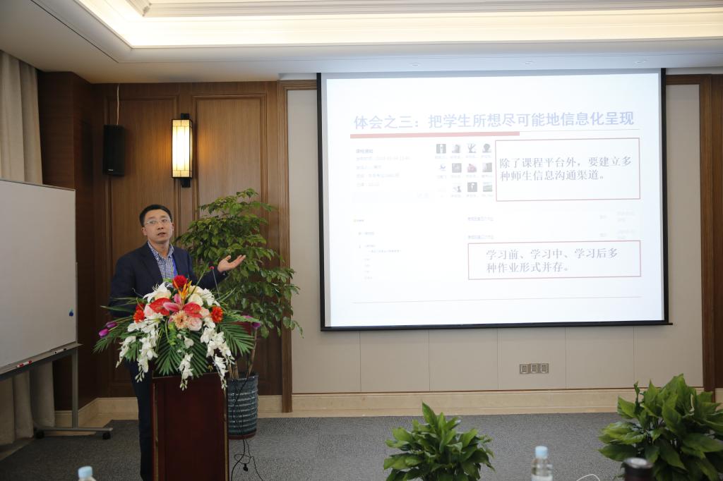 上海体育学院教务处处长、《学校体育学》课程项目负责人唐炎做了在线课程与教材建设体会交流与分享。唐炎认为在线课程不是教材的电子化,也不是教师讲课的视频化,也不是教材的电子化+讲课的视频化,而是以学生学习活动为线索将教学过程全要素进行信息化和个性化的整合过程。他以学生角度出发,从在线课程学习前、学习中、学习后介绍了课程的建设要求。此外,他强调在线课程的建设关键在于如何尽量多而有序的将信息呈现给学生,通过建立交流平台、布置作业、分析讨论、督促学习进度、实时问卷来建立良好的教与学的密切联系。最后,他从自身课程建设的经验提出了在线课程建设的一些建议,得到了与会代表的一致认同。