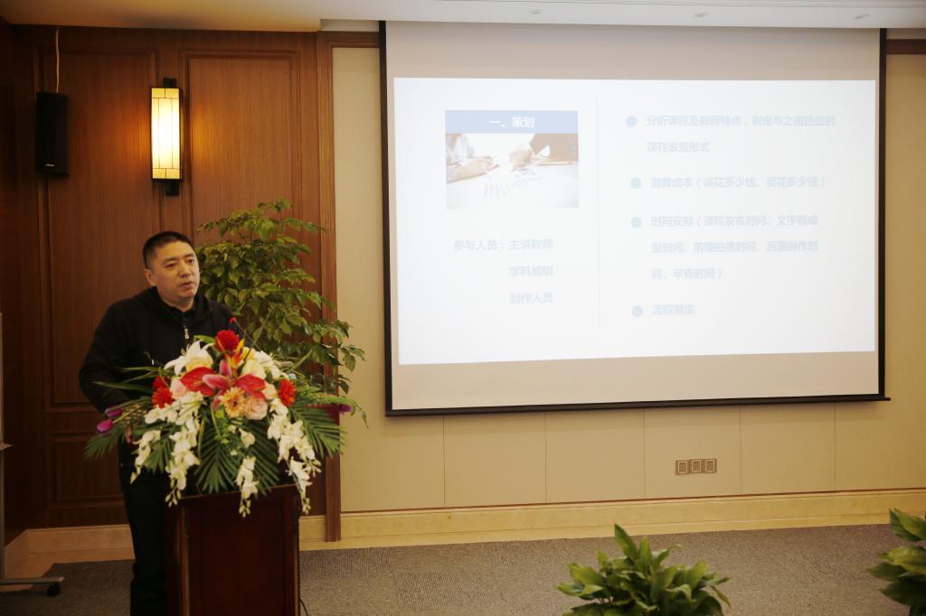 “爱课程”网的居峰老师从在线课程的起源、我国在线课程的发展、在线开放课程建设的质量标准、在线开放课程应用等方面详细介绍了在线课程发展的情况。他指出,教学应借助高科技手段,将在线课程的建设与课堂教学相融合,实现优质教育教学资源合理配置,提高教师教学水平,从而促进本科教学水平的提高。此后,课程视频制作专家李福利老师从在线课程的拍摄与制作方面做了详细的介绍。