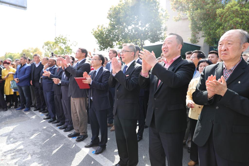 在仪式上,国际乒联副主席、“乒博馆”馆长施之皓向国际乒联博物馆前馆长查克•霍伊先生颁发“荣誉馆长”证书。