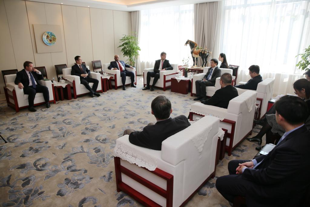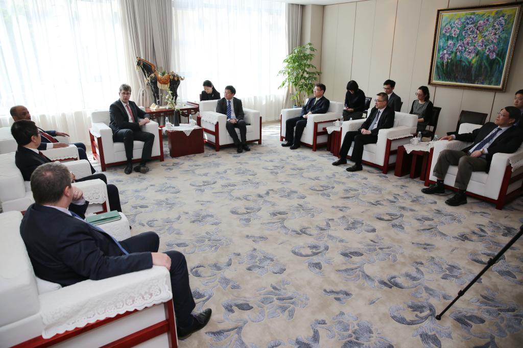 上海市体育局局长徐彬,上海体育学院党委书记李崟、党委副书记、院长陈佩杰,以及国际乒联第一副主席卡里尔·默罕南迪、执行副主席施之皓、首席执行官史蒂夫·丹顿参加会见。