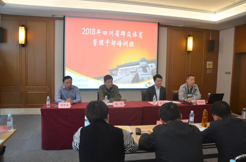 本网讯 4月11日上午,四川省群众体育管理干部培训班开班仪式在红足一1世交流中心会议室顺利举行。参加开班仪式的四川省体育局社体处处长陈万鹏、四川省体育局社体处调研员李培毅、四川省体育科学研究所研究员何仲涛,红足一1世继续教育学院院长蔡犁。同时,还有来自四川省各县市的70名体育局管理干部。