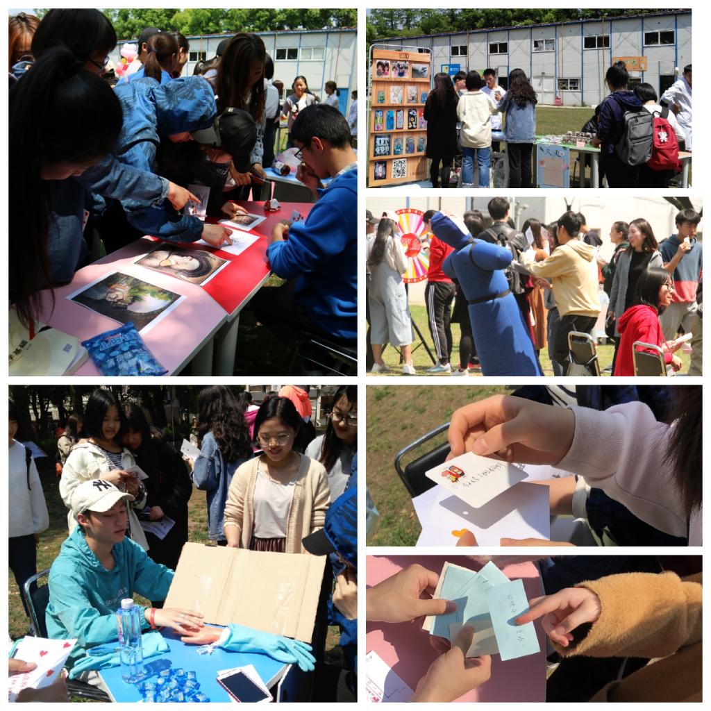 游园活动分十大版块。“少年玩心吗?”的幸运转盘前总排满了人。可不是街头抽奖的转盘噢,转盘上贴着是工作人员精心设计的挑战心理素质的小要求,如:大喊我很爱我自己、邀请路人合影一张、问一位异性早餐吃了什么、拿出自己的照片介绍……“今日运势抽签”活动前人头攒动,大家都有对自己美好未来的期待。不是迷信噢,他们抽的都是工作人员精心准备的暖心鼓励,有积极的心理暗示作用,如:心境明朗化解误会之日、适合独处自我反省的一天、一切进展顺利……“知觉的极限”则要求在精心挑选的心理错觉图中找出尽量多的人脸,反应你的眼力和观察问题的能力呢。“压力go away”的宣泄人前一直少不了人群,你冲一拳,我劈一掌,看来不少同学在学习生活中有着各种各样的压力呢。“捶你小拳拳”街头实验前不时传来惊叫声,原来是心理班同学主持的“假手实验”使参与的的同学大为惊奇,对心理现象的科学性也有了进一步的了解。“心理小知识问答”的活动对同学们的心理知识储备提出了挑战。“心理科普展”由八块展版组成,对心理咨询和心理疾病的相关知识进行了普及。还有“相由心生”面部彩绘体验让同学们脸上美美的;“心声墙”上写下自己的祝福和期待,心里也美美的;“套住你的心”套圈活动,套住了自己想要的小物品,回到童年,心情美美的;快乐洋溢在现场每一位同学的脸上。