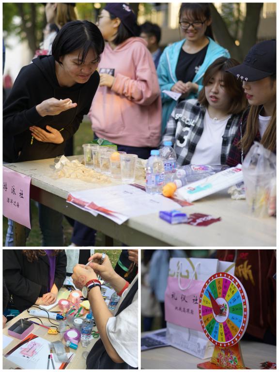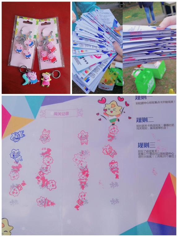社团文化游园会给同学们提供了22个社团挑战关卡,在体验社团文化的同时,积累小火炬印章图案。单车社、瑜伽社、咏春社、游泳社、台球社、跆拳道社、高尔夫球社、噜啦啦社、羽毛球社、毽球社和花样跳绳社团分别将趣味同运动结合,设立了互动体验摊位;特奥、彩云支南则将公益活动带到了现场;伊人调色馆、礼仪社、动漫社、音协和星璨在游园会上纷纷展示了多样的校园文化活动成果;更有结合学科专业知识的推拿社和结合年轻一代兴趣创新活动形式的辩论社为游园会增添了不少风采。